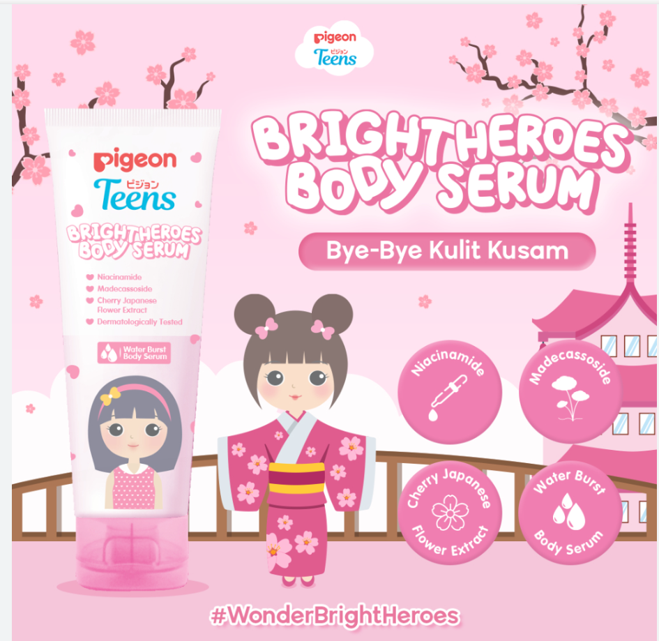 Pigeon Teens Bright Heroes Body Serum 100ml | Body Serum Remaja| Body Lotion Remaja |Body Serum Kulit Kusam| Water Burst, Cepat Menyerap, Tidak Lengket