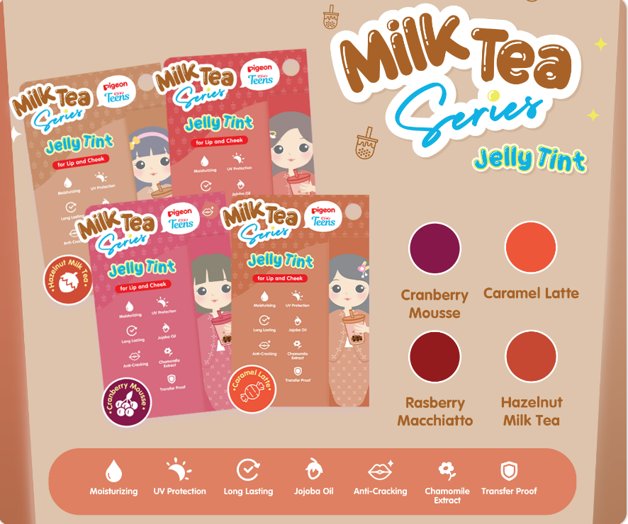 PIGEON Teens Jelly Tint dengan tekstur ringan dan tidak lengket. Diperkaya dengan Jojoba Oil, Chamomile Extract dan Glycerine yang dapat melembabkan bibir sehingga nyaman digunakan sepanjang hari. Tersedia dalam 4 pilihan warna yang cantik dan tahan lama. Love at first swipe!